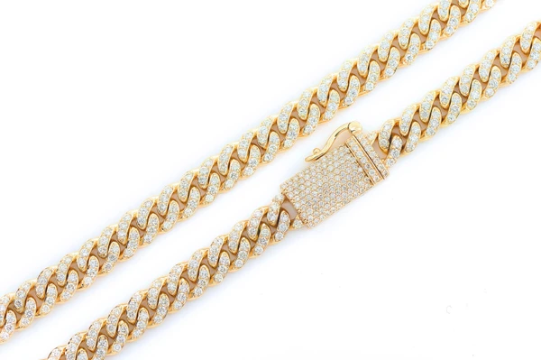 The 6mm iced-out Diamond Cuban Necklace is designed to elevate your style and leave a lasting impression. Exclusively crafted by Iceshop, this piece transforms the classic bold Miami Cuban into a dazzling work of art. With 9.50ctw VS quality diamonds hand-set by a master diamond setter, this necklace delivers unparalleled sparkle and sophistication. Whether you’re dressing up for a special occasion or redefining everyday elegance, this necklace is sure to turn heads with its radiant design.