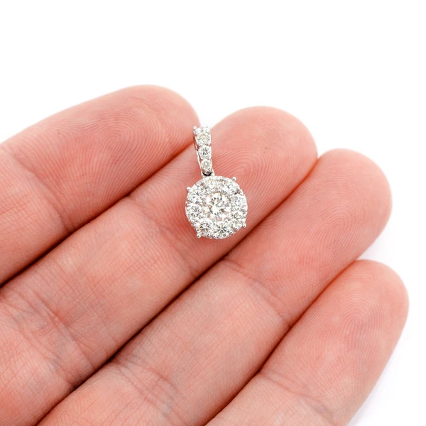 Introducing the Mosaic Cluster Diamond Pendant – a stunning and classic addition to your jewelry collection. Perfect for any occasion, this pendant is designed to dazzle and captivate with its radiant sparkle. Featuring a mosaic setting of diamonds that effortlessly catch the light, this exquisite piece is a true embodiment of timeless beauty and sophistication.